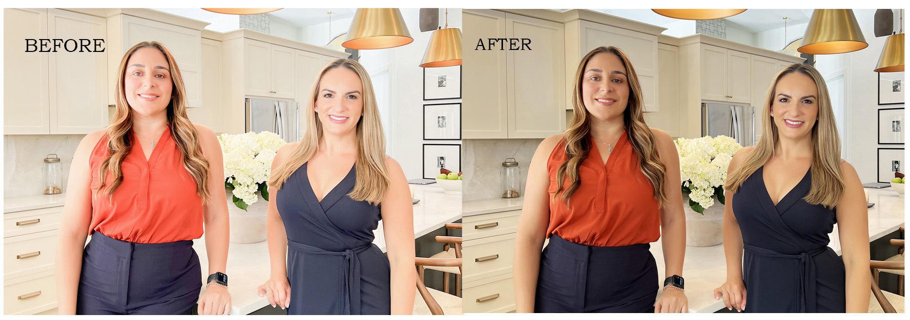 Teeth Whitening and Eye Enhancement: Retouching services often include whitening teeth and enhancing the eyes to make them stand out. Brightening and sharpening the eyes, along with whitening teeth, can significantly improve the overall look of a portrait, making the subject appear more vibrant and engaging.